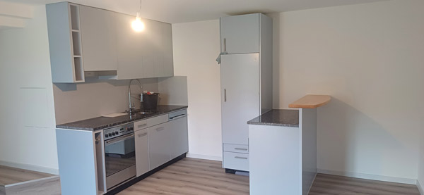einem Backofen. Ein Geschirrspüler und ein grosszügiger Kühlschrank stet zur Verfügung.